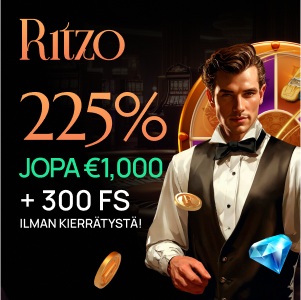 100% bonus 250€ asti. + 50 FS Kierrätys 30*B. Minimitalletus 20€