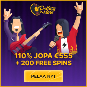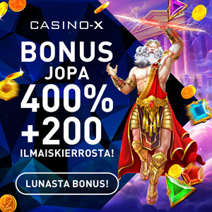 100% bonus 200€ asti. Kierrätys 25*B+D. Minimitalletus 20€. Max. panos bonuksella 5€.