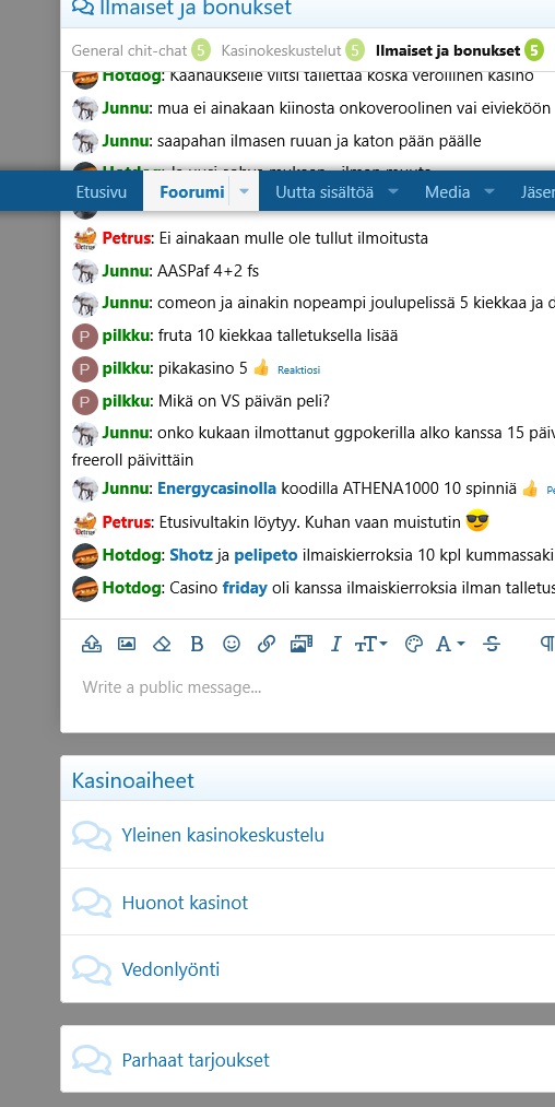 Päivän ilmaiskierrokset ja bonukset löytyvät Etusivun alaosassa.